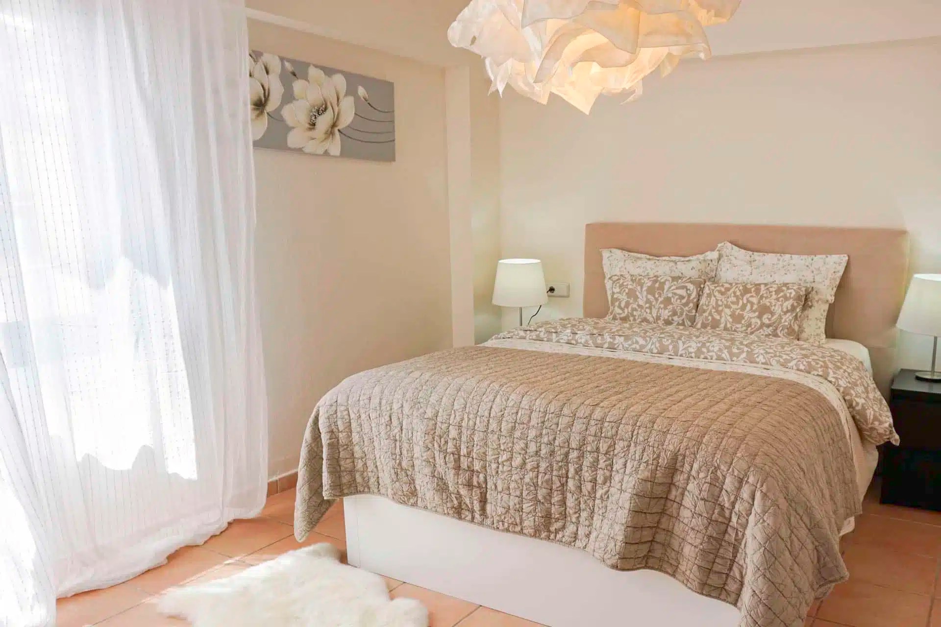 Sie ist bequem über einen Aufzug erreichbar und bietet einen offenen Wohn- und Essbereich mit Zugang zum Balkon, der einen fantastischen Panoramablick auf das Meer ermöglicht. Die Wohnung verfügt über eine Einbauküche, zwei Schlafzimmer und einen zweiten Balkonzugang. Das helle Duschbad ist modern gestaltet. Zusätzlichen Stauraum bieten die praktischen Einbauschränke. Die Wohnung wird komplett möbliert vermietet.